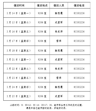 太阳集团tyc33455近期上班安排表