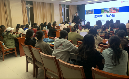 为进一步精准开展员工就业指导与服务工作,提升员工对选调生、国考等备考信息的了解程度,实现更高效备考,10月24日晚19点,公司邀请员工就业指导中心正科级秘书吴乐老师在教学九楼9209报告厅举办了“选调生工作介绍”专题讲座,讲座由公司研究生辅导员段晓辉主持。