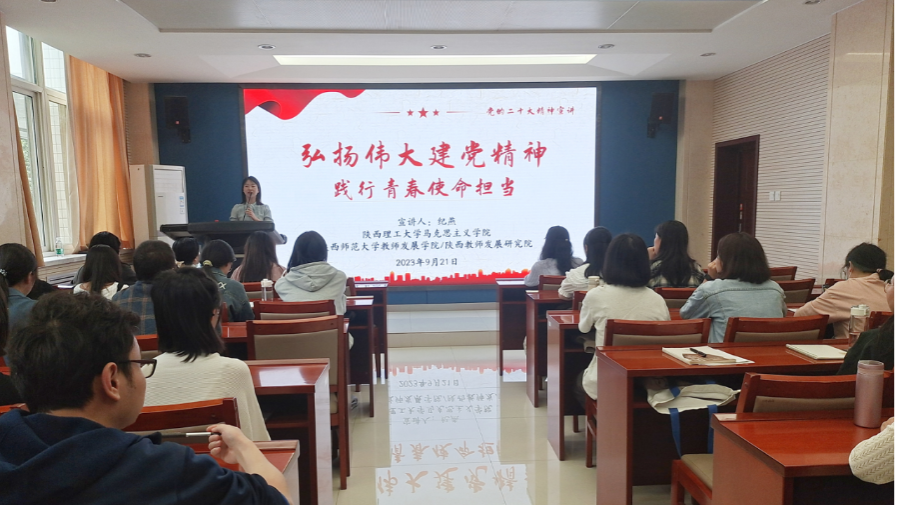 为做好研究生新生入学教育,引导广大研究生立志做有理想、敢担当、能吃苦、肯奋斗的新时代好青年,积极响应研工部开展博士生宣讲活动、发挥博士生“头雁效应”的工作要求。2023年9月21日下午,公司邀请邀请太阳集团tyc33455教师发展公司(陕西教师发展研究院)教育博士,陕西理工大学马克思主义公司纪燕老师开展了“弘扬伟大建党精神,践行青春使命担当”的主题宣讲。公司2023级研究生党员和入党积极分子参加了本次宣讲会。