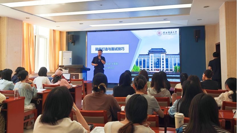 为帮助毕业生提升求职竞争力,9月28日下午,学院邀请公司员工就业指导服务中心王阳阳副主任,为公司毕业生带来“简历打造与面试技巧”的专题讲座,公司2024届毕业生参加了讲座。会议由研究生辅导员段晓辉主持。